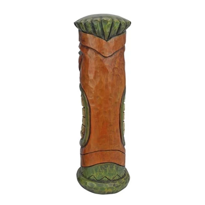 Say “aloha” to island fun with this exotic sculpture perfect for a year-round luau! Mimicking the original native, rough-hewn carvings, our island survivor is cast exclusively for Toscano in faux wood-grained designer resin and individually hand-painted. Our playfully primitive sculpture is sculpted 360 degrees so guests may admire it from any angle poolside, in a colorful garden, or in a retro bar. 7″Wx7″Dx21″H. 9 lbs.