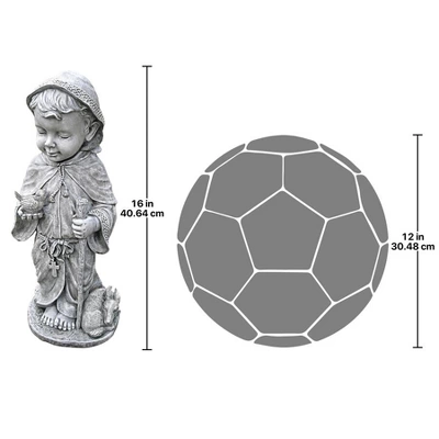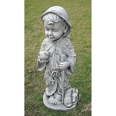 Dressed in the robes of an Italian Franciscan monk, with a cross hanging at his waist and a wide-eyed fawn nestled at his feet, one of history’s most beloved saints is depicted here as a young cherubic child by Italian artist Carlo Bronti. This religious sculpture is cast in quality designer resin with an antique stone finish. If you’re a nature lover, this Design Toscano religious sculpture will be especially impressive! Small: 7½”Wx5½”Dx16″H. 3 lbs.