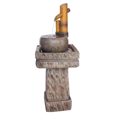 Put the finishing touch on a peaceful, meditative oasis in your garden with the cascading water music of this traditional, Asian-inspired bamboo and stone fountain. Water gently cascades downward emanating from a bamboo font to a stone bowl lit by included low-voltage LED lights that gently spills into a stone pedestal base. It constantly recycles water from the lower reservoir pedestal. Cast in quality designer resin and hand-finished for Design Toscano, this investment in garden art features an integrated, UL-listed, indoor/outdoor pump.
