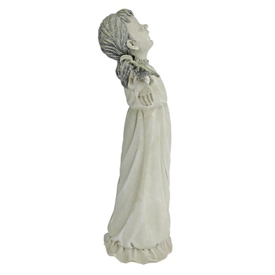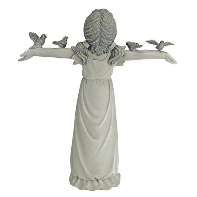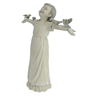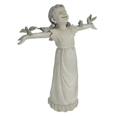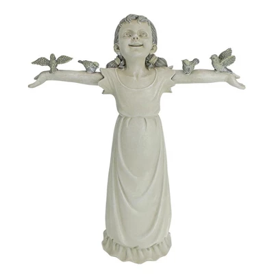 Delight in the joy of pure praise with this darling little girl statue raising her arms full of feathered friends! This magnificent girl sculpture is cast in quality designer resin and hand-painted. Our little girl figurine is as at home indoors as our, alerting fellow gardeners that you take the beauty of the exterior of your home as seriously as the interior. Medium: 14½”Wx5″Dx16″H. 4 lbs.