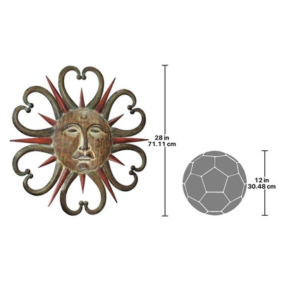 In an artistic display of hand-crafted metalwork, the sun shines in a symmetry of rays and angles to brighten any wall. An instant statement piece for gallery or garden wall, this over two-foot-diameter work is highlighted with a multi-toned weathered finish that reflects its stylized detail. 28″dia.x2″D. 3 lbs.