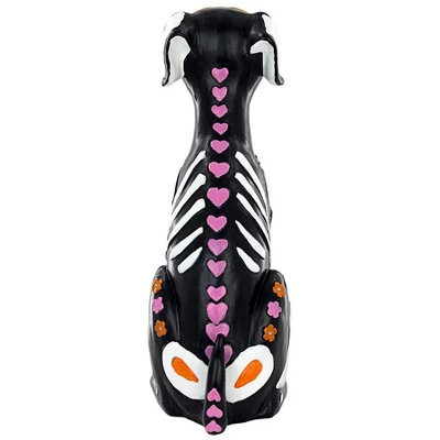 Our calavera sugar skull skeleton puppy statue is such a good dog that he even brings his own bones! Rich in the Day of the Dead cultural traditions of Mexico, man’s best friend is wide-eyed and ready to help honor departed souls and to celebrate life in the face of death. Our Design Toscano-exclusive will keep the Dia de los Muertos mood light and will add a decorative touch to home or garden throughout any season. Cast in quality designer resin, our over foot-tall, spooky skeleton canine is individually hand painted in full color with heart. A unique gift!