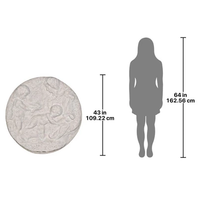 Sculpted out of marble by the Renaissance master Michelangelo (1504-1506), this wall statue of the Madonna, the Child, and an infant John the Baptist has a somber mood and appeal. Also known as Taddei Tondo, it was never completed. Cast in quality designer resin and finished to resemble faux stone, this 16th-century direct casting stretches nearly four feet in diameter to become an instant focal point on home, church or gallery wall. This large-scale, display-quality wall sculpture transforms any entertainment area, recreation area or church rectory into something truly magnificent! 43″dia.x7″D. 47 lbs.
