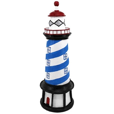 Make it easy to set sail and navigate your backyard pond or flowerbed with this whimsical bit of coastal decor. Our classic Design Toscano exclusive lighthouse statue is cast in quality designer with an individually hand-painted finish in regal red and Newport blue that adds instant nautical charm as a seaside collectible focal point. 8″dia.x23½”H. 7 lbs.