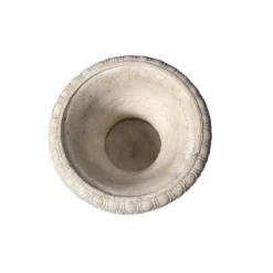 Replicating the grand designs found in the courts of Italian palaces, this stunning urn is an artistic, grand-scale architectural element. Fraught with exquisite detail, from the faces of Greenmen, to the lush leafy foliage detailing, it is just as breathtaking displayed alone as it is filled with your greenery. Cast in quality designer resin for year-round display in home, garden or restaurant, this two-foot-tall masterpiece boasts an exquisite, faux French limestone finish. This is a truly amazing statement piece and sure to be the centerpiece of your home, garden, restaurant or hotel. 17½”Wx17½”Dx25½”H. 18 lbs.