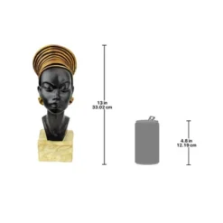 From the land along the Nile, this beautiful “Kandake,” or Nubian queen, is immortalized in sculpture with her regal display. Our museum-quality sculpt is cast in quality designer resin and hand-painted to highlight the royal headdress, classic jewelry, and striking features of this elegant ruler. 5½”Wx7½”Dx13″H. 3 lbs.