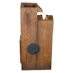 The spectacular Old Trail Post Cascading Waterfall Garden Fountain is sure to be the crowning statement in your garden or on your patio. Multiple cascading streams of water flow to create an in-home oasis and peaceful, western atmosphere. With multiple basin pools highlighted by included LED lights, you can even enjoy this rustic old west garden fountain in the evening. It can be placed indoors or outdoors and constantly recycles water from a hidden reservoir. Cast in quality designer resin and hand-finished to replicate rustic wood posts, our Old Trail Post Cascading Waterfall Garden Fountain also features a UL-listed, indoor/outdoor garden fountain pump and low-voltage LED lights for dramatic effect. Another quality garden fountain from Design Toscano! 13½”Wx10″Dx29½”H. 39 lbs.
