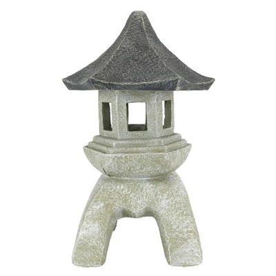 - Our large Zen style pagoda lantern sculptures measure 11.5″dia.x17.5″H. 9 lbs. making them the perfect home or Asian inspired meditation garden decorations! Window openings measure 1.25″Wx2″H.