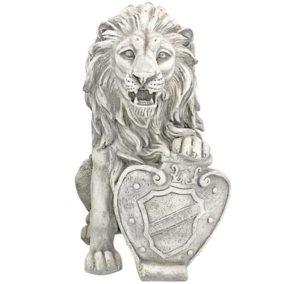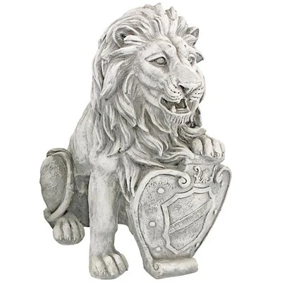 Give visitors a regal welcome with this scaled lion sentinel replicating those that once guarded the Medieval mountaintop fortress in Abruzzo, Italy. In the classic animalier style, this lion statue is artistically sculpted with full mane, powerful haunches, and shield bearing an ancient coat of arms. Our Gothic sculpture is cast in quality designer resin with a faux antique stone finish exclusively for Design Toscano. Proudly seated atop one of our optional, stately plinths, our powerfully muscular icon will lend quiet strength and courage whether flanking an entryway or standing sentinel near a garden gate. 9″Wx14½”Dx17″H. 11 lbs.