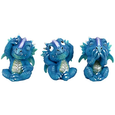 So loveable! Though you’d expect them to be fiery, these wide-eyed and whimsical baby gothic dragons actually add a bit of whimsy to your desk and promise never to give up your secrets. Our blue meanie dragon trio is cast in quality designer resin and hand painted to see, hear, and speak no evil. A great Design Toscano exclusive collectible gift for the dragon lover! Each 3”Wx3″Dx3.5;”H. .5; lb.