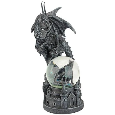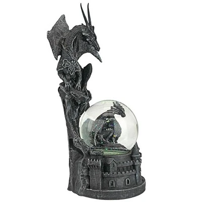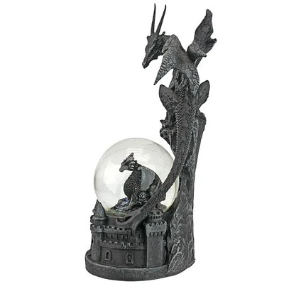 Captured by the Knights of the Realm and sequestered in Dublin s Malahide Castle, this baby dragon awaits a daring rescue by his spiny elders! Our collectible Medieval dragon sculpture, created exclusively for Design Toscano, is cast in quality designer resin to capture the amazing sculpted detail, the Gothic guardian claws and the castle base finished in dark gray stone. Shake your dragons to watch the enchanted emerald glitter fall in the glass snow globe! Each: 3½ Wx4 Dx7½ H. 1 lb.