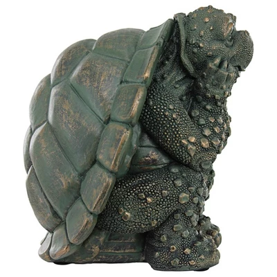 Even with the weight of the world on his back, our Thinker can still ponder a tortoise lineage that dates to the days of the dinosaurs! With a tongue-in-cheek nod to Rodin’s famous Thinker statue, our turtle version by artist Sheldon is great perched near a pond or sitting wisely on a library shelf. Cast in quality designer resin and individually hand painted in verdigris bronze, this amniote tortoise statue is available only from Design Toscano! 6″Wx7″Dx7½”H. 1 lb.